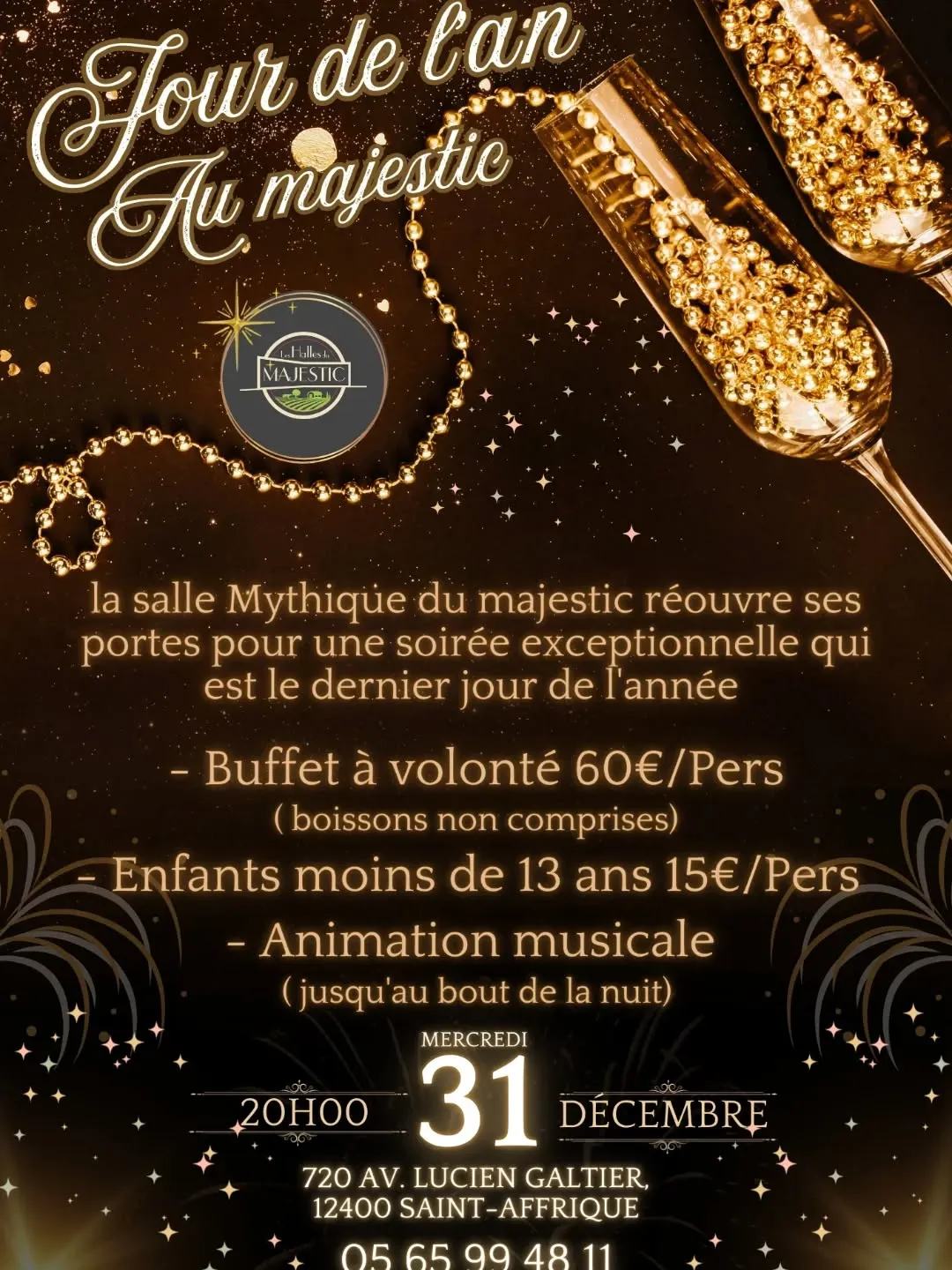 Le Majestic renaît pour le Nouvel An !La salle mythique de Saint-Affrique, autrefois lieu de fête, vous ouvre à nouveau ses portes pour une soirée inoubliable !