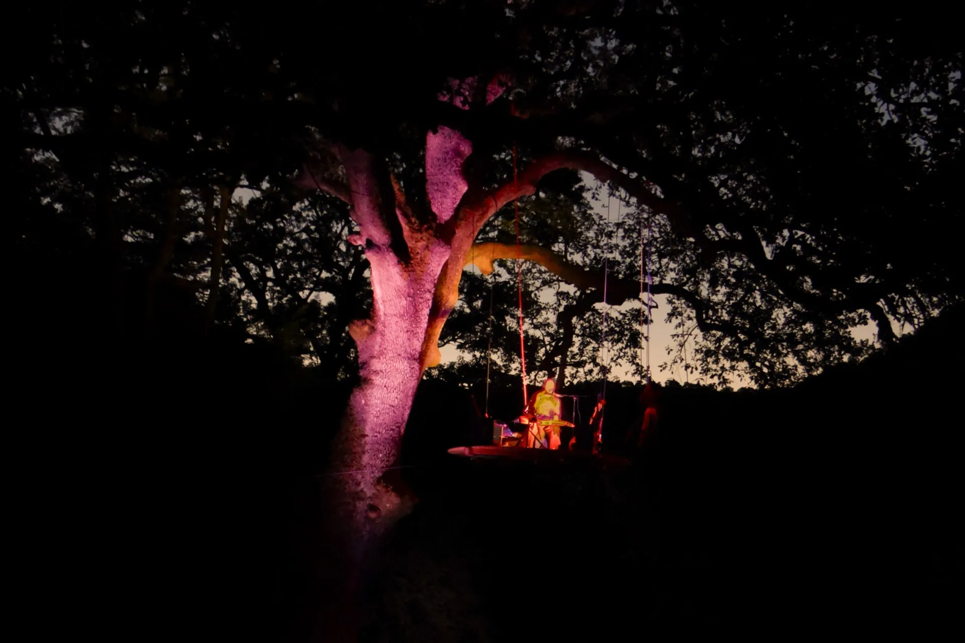 Chaque rencontre débute en fin d’après‑midi par une visite de la ferme pour les premiers inscrits, suivie d’une dégustation de produits locaux (fromages de chèvre, pain paysan) et d’un repas paysan préparé sur place. La soirée se poursuit avec un concert en arbozanteur, une scène musicale originale perchée dans un chêne majestueux, incarnant à la fois créativité et immersion en pleine nature. -